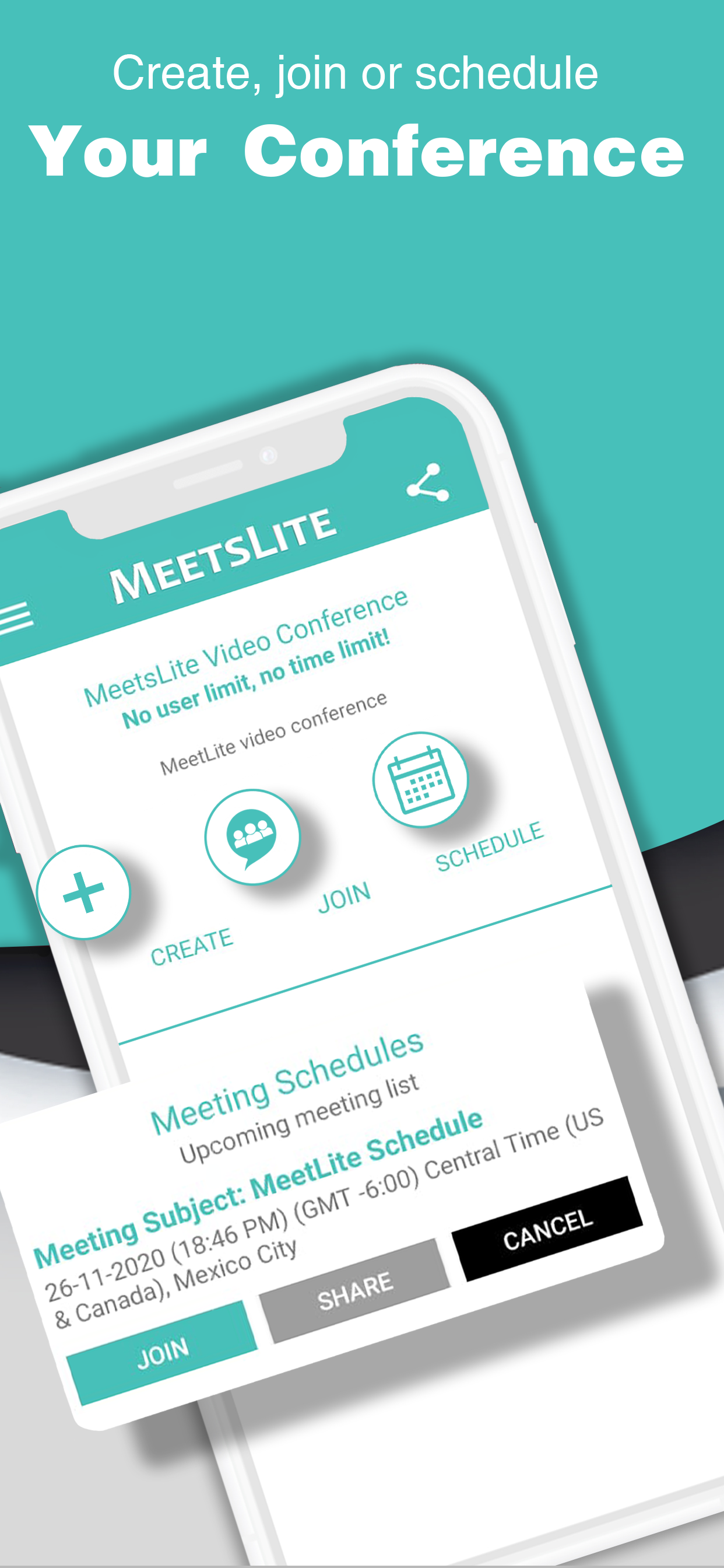 Create, join or schedule your video conference